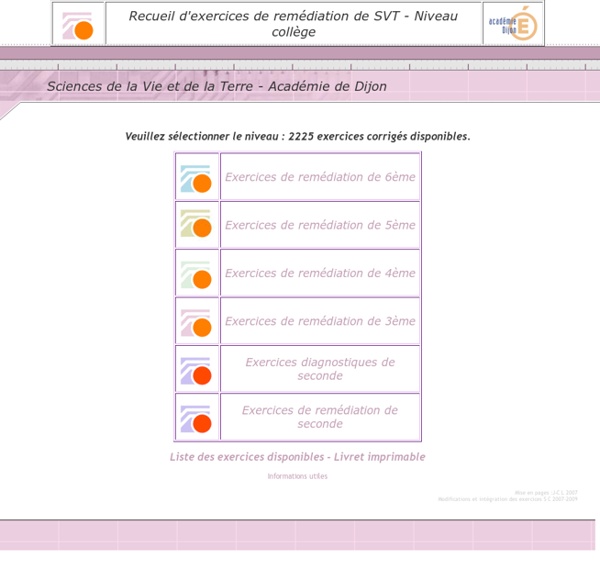 Dans les légendes de la. Elle contient 477 exercices corrigés. Vous trouverez sur le site de l'académie de dijon des exercices de remédiation en svt, transposables assez facilement à d'autres disciplines. Voii une liste d'attri uts: Powered by create your own unique website with customizable templates.